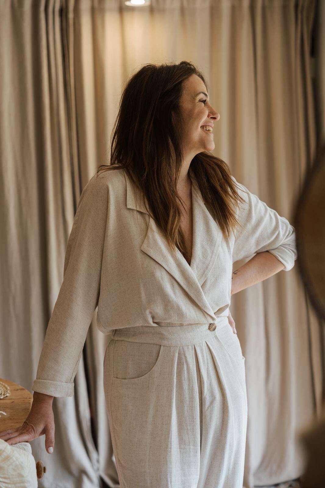 La túnica Ohara, de lino natural, envuelve ese instante con la suavidad del Mediterráneo. Atemporal, ligera y honesta, se mueve con el cuerpo y deja que la piel respire. En Melanie, cobra una nueva forma de belleza: la de quien brilla sin esfuerzo, solo por ser.