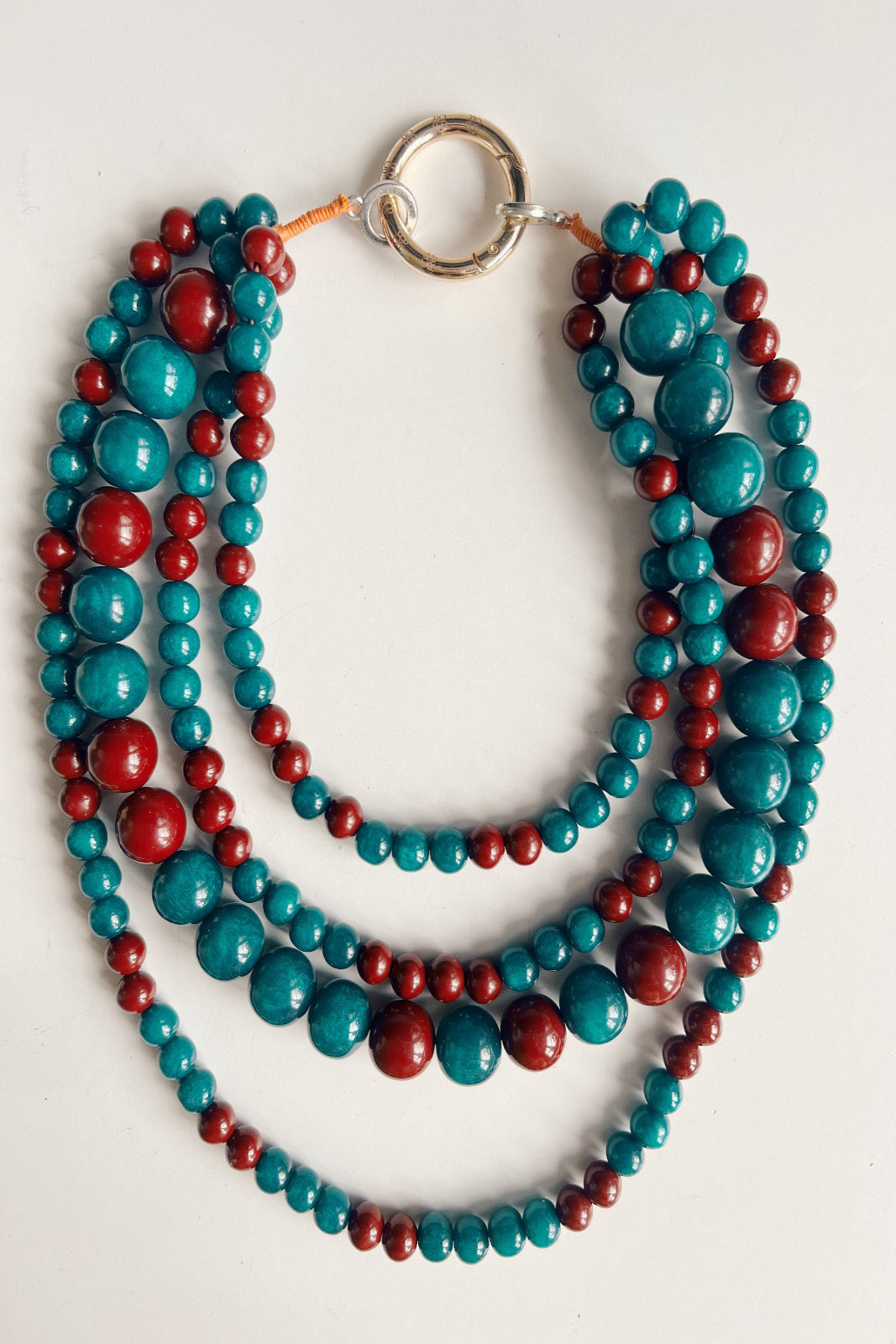 Its multiple strands of resin beads add presence without losing lightness, and its adjustable system allows it to be worn in different ways, depending on the moment or the mood.