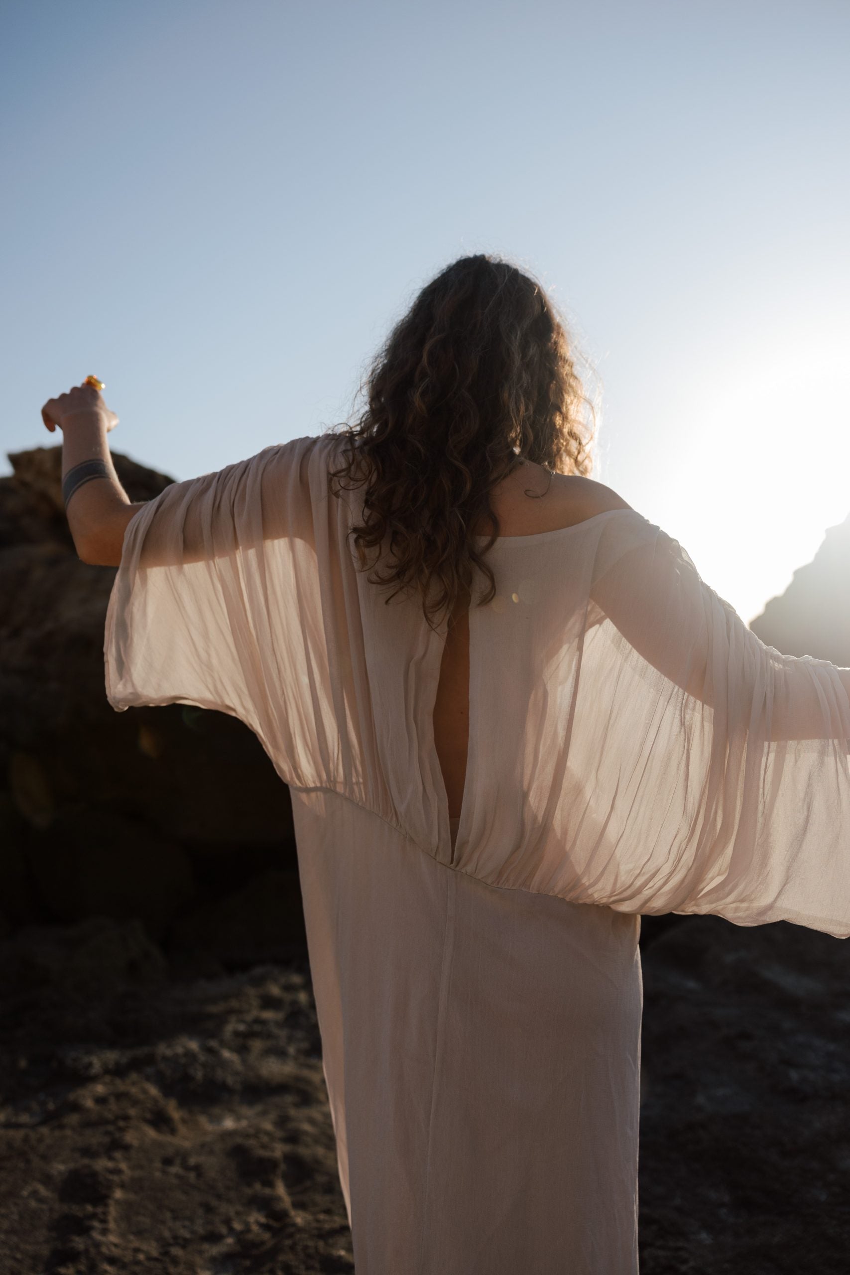 ELIXIR is a Greek-inspired dress, designed to make you feel powerful, feminine, and light all at the same time. A unique garment for special moments. Timeless, ethereal, and full of soul.