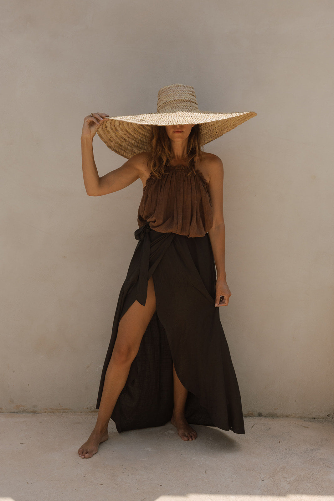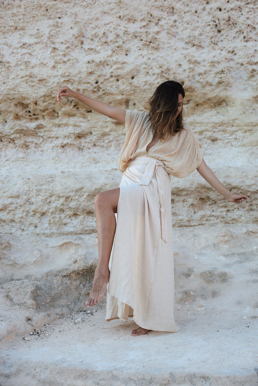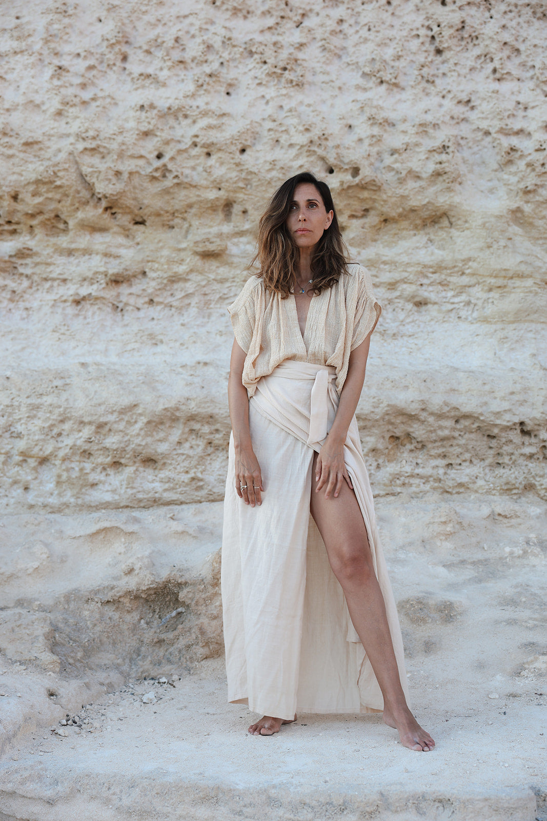 LULA is a wrap-style skirt made from modal, a soft, flowing fabric. Its feminine and timeless design makes it a very easy-to-wear piece, perfect for layering on sunny days with style and lightness.