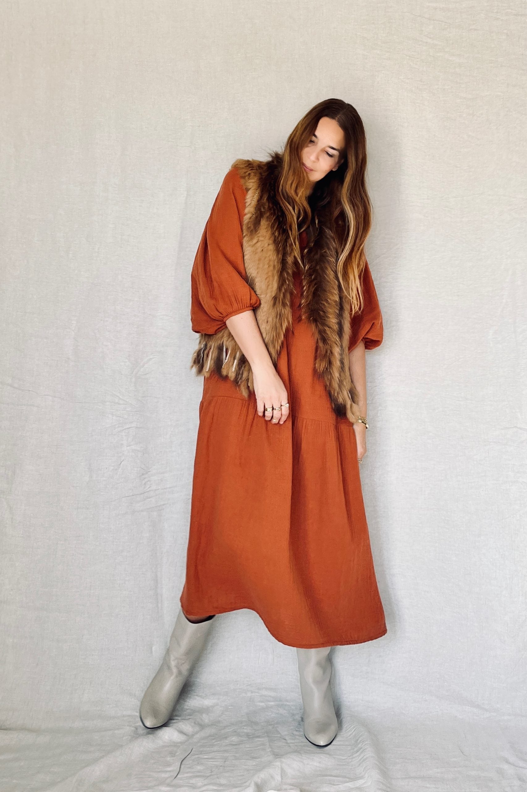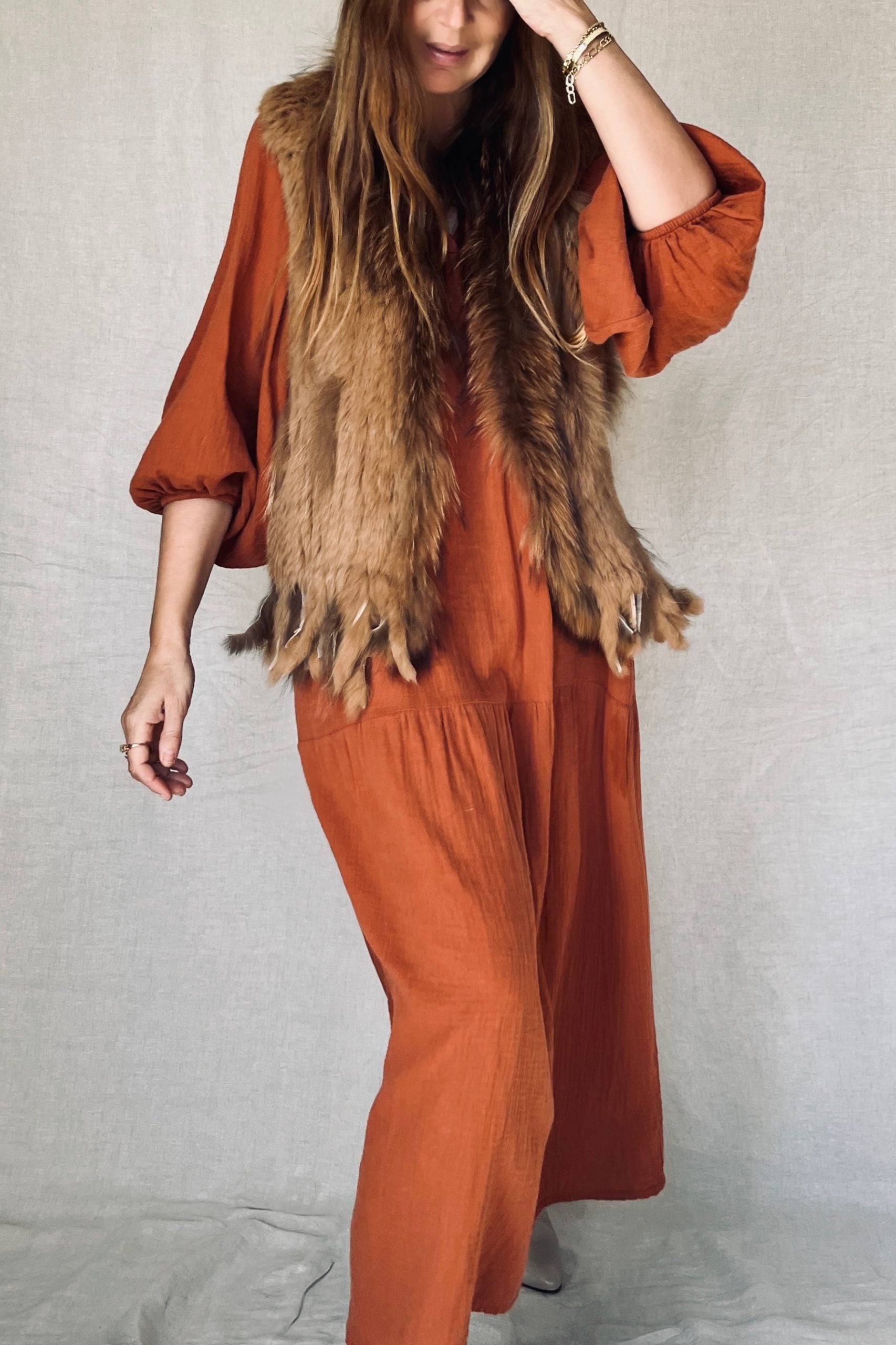 OTILIA is a fur vest perfect for layering over any sweater or blouse, or even under a jacket on colder days. It's undoubtedly a versatile, timeless, and classic piece that will elevate any style.