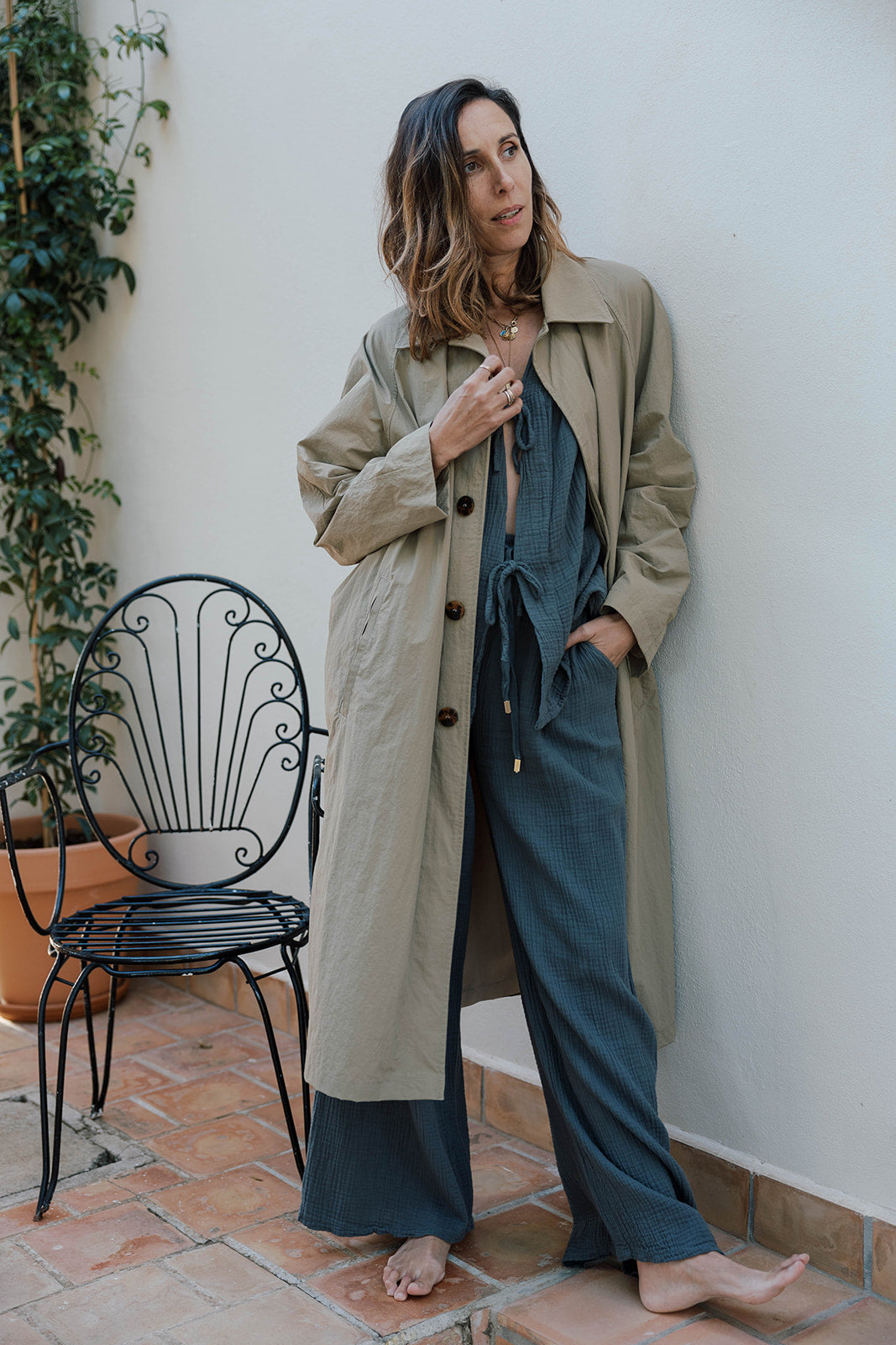 MATILDA is a masculine, versatile, and distinctive trench coat, ideal for protecting us from the rain thanks to its waterproofing. Its design is inspired by an original vintage garment. Dare to wear it with style.
