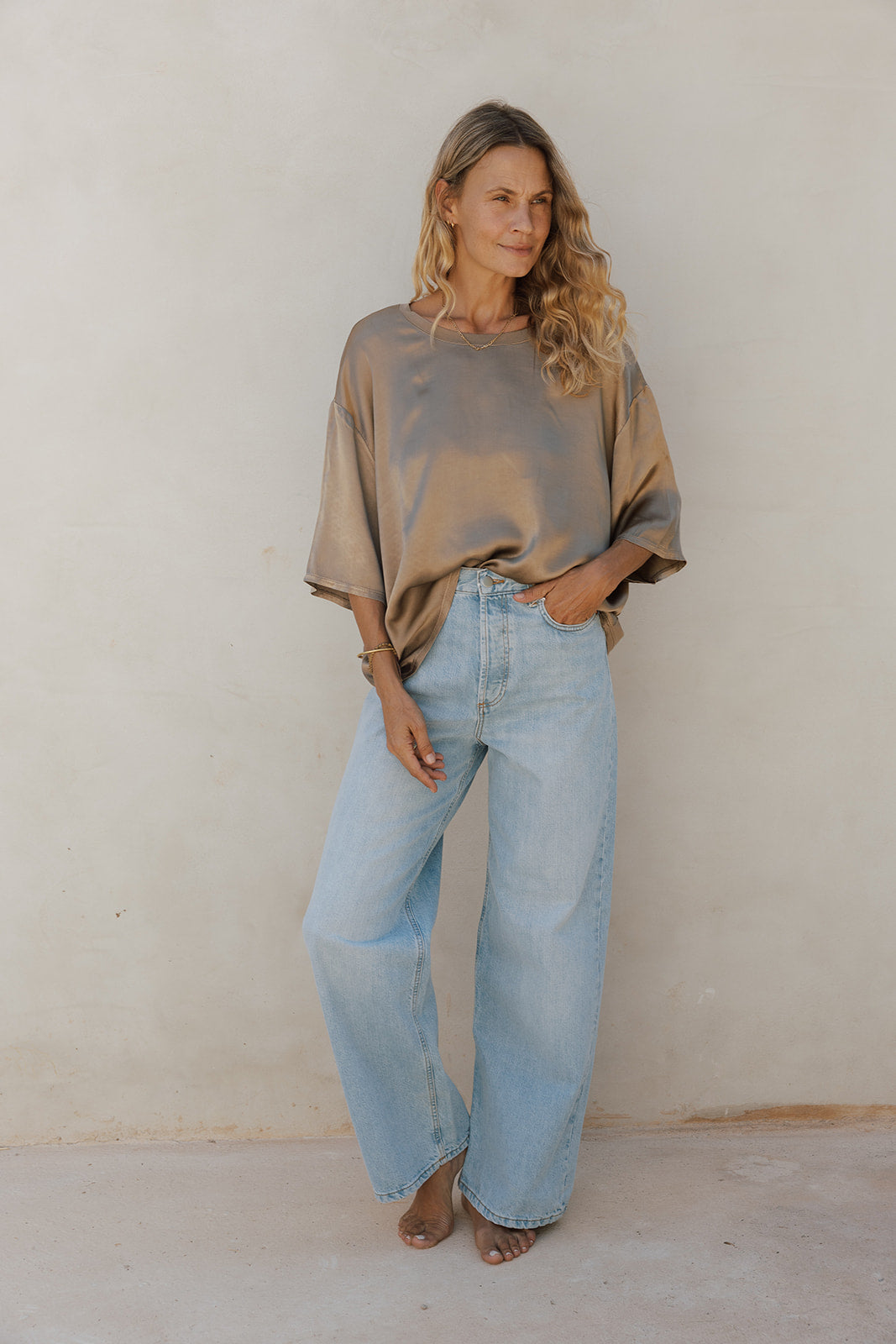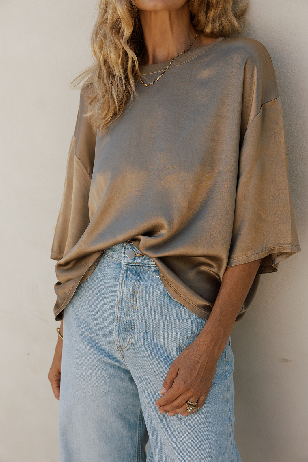 CAMI is a crew-neck T-shirt that combines satin with knit, making it the essential staple of any Ten Twelve wardrobe. Its minimalist design makes it very easy to combine with any skirt or suit in the collection.
