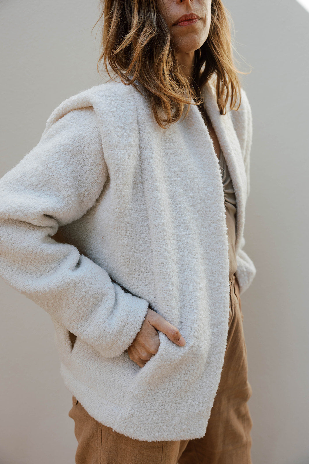 The BERLIN ECRU is an urban and elegant buttonless jacket. Its design takes us back to the '90s, and the back features elastic at the bottom to create a distinguished bomber effect. A gem of a jacket to enjoy year after year.