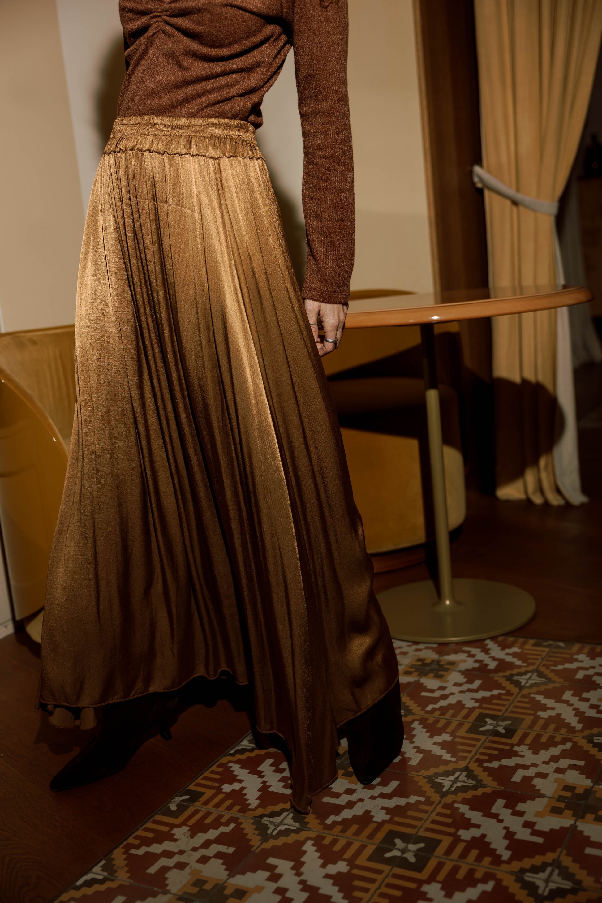 CELIA is a beautiful satin skirt made of 100% viscose with an elastic jogging waistband and drawstring for added comfort. It's perfect to pair with the Celia blouse for a timeless and versatile everyday look.