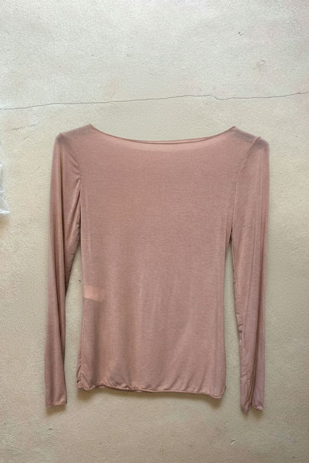 It's a second-skin tee with a soft, delicate feel, perfect for layering under sweaters, cardigans, or blouses. It creates a feeling of comfort in an elegant, feminine, and timeless way.