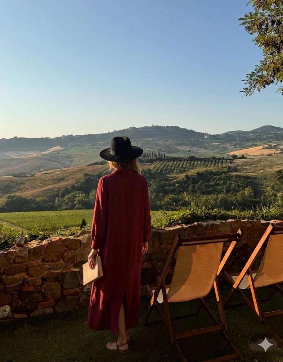 El vestido Alella es una oda a la sencillez y a la libertad de la forma. Diseñado con una silueta fluida que se funde con el cuerpo, esta pieza captura la esencia de la calma mediterránea. Su estructura alargada y su caída ligera están pensadas para acompañar cada paso con una elegancia natural y sin esfuerzo.