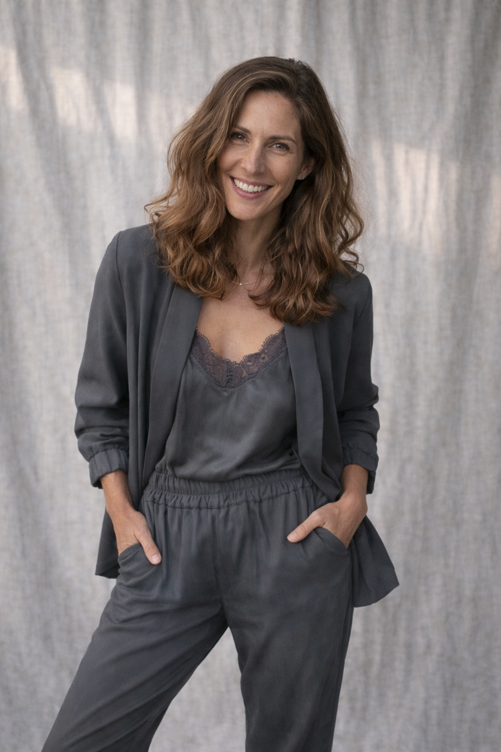 Un look que respira calma y carácter: el conjunto formado por COTI pantalón en NEGRO CARBÓN y COTI kimono NEGRO CARBÓN —pantalón fluido y kimono envolvente— cae con naturalidad sobre el cuerpo, creando una silueta relajada pero definida. La textura suave y el corte amplio transmiten comodidad sofisticada, mientras el tono oscuro aporta profundidad y elegancia sin esfuerzo. Es una estética introspectiva y contemporánea, donde lo minimalista se vuelve protagonista y cada gesto se siente intencional.
