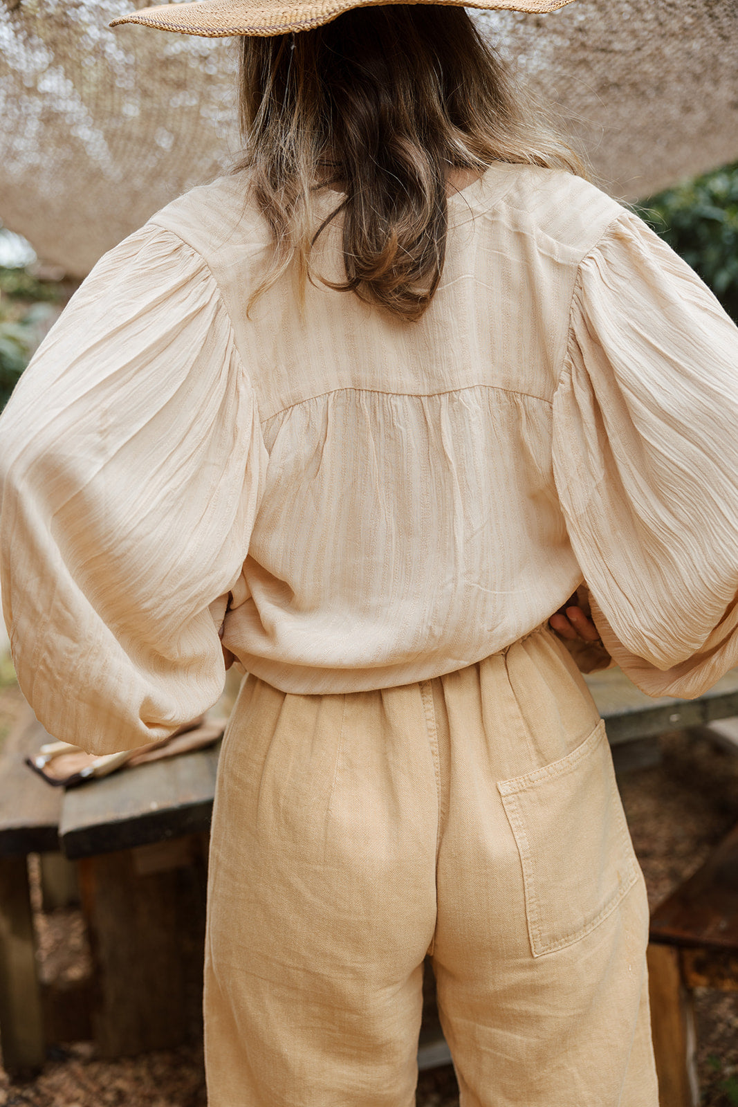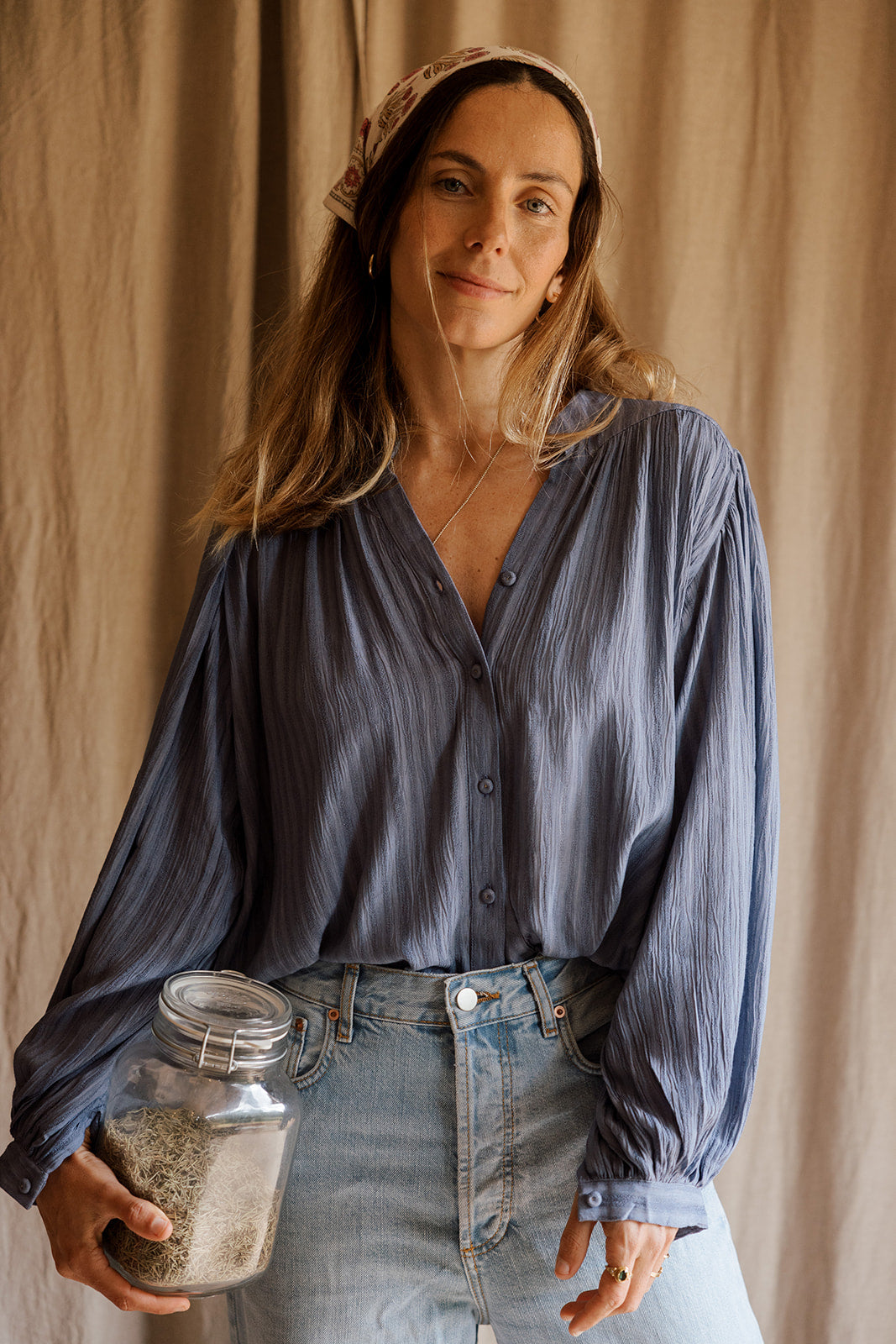 Blusa abotonada en el delantero, con mangas abullonadas y un delicado tejido de jacquard de viscosa, igual que nuestro vestido Junaina. Su silueta romántica y el suave tacto de la viscosa hacen de esta prenda una opción ideal para quienes buscan comodidad y estilo. Perfecta para lucir en múltiples ocasiones, su versatilidad la convierte en un básico imprescindible