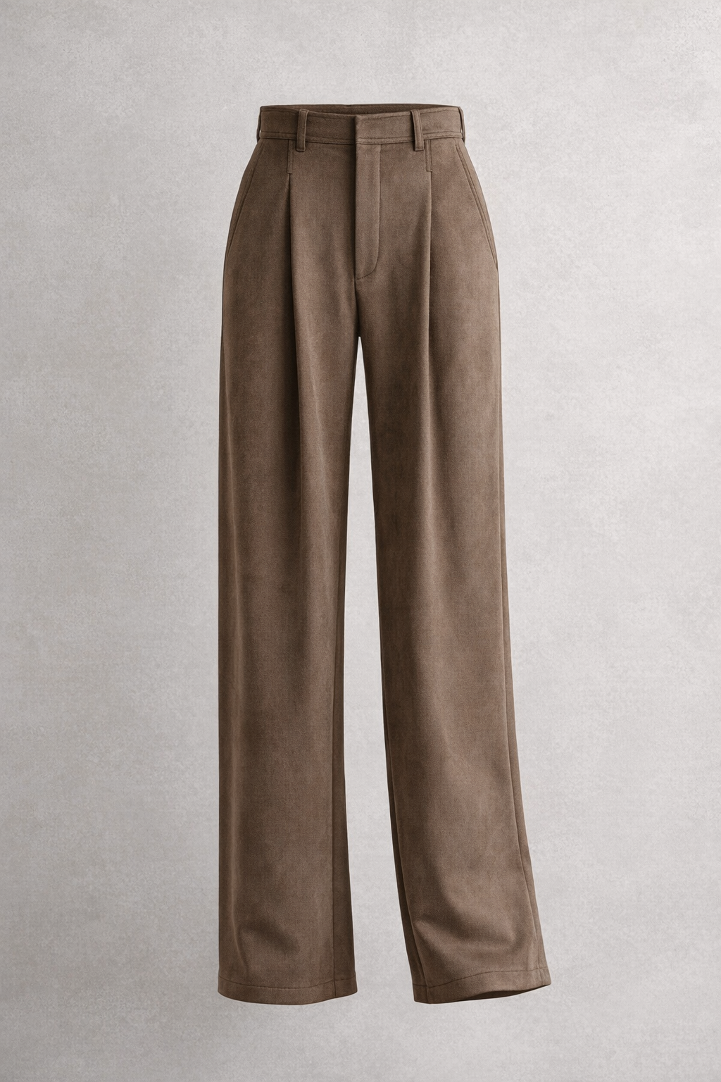De corte clásico y líneas limpias, esta pieza se posa con elegancia discreta. Los pliegues frontales dibujan una silueta serena, mientras el tono tierra aporta calidez sin estridencias. Se lleva con naturalidad, como quien no necesita más que lo esencial.
