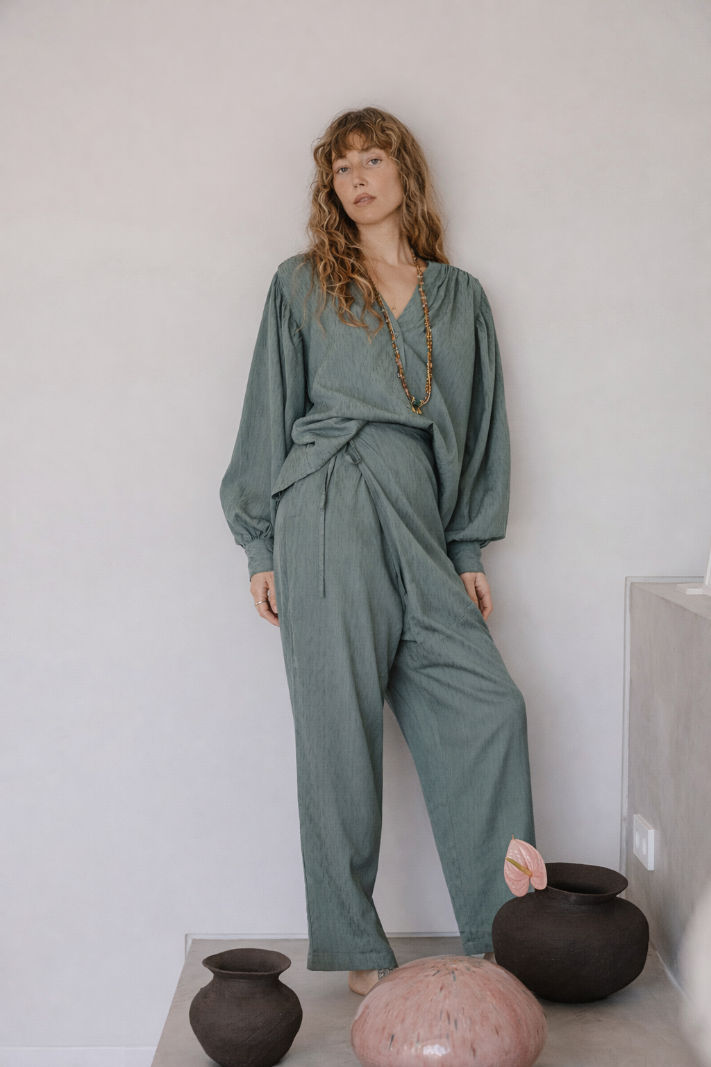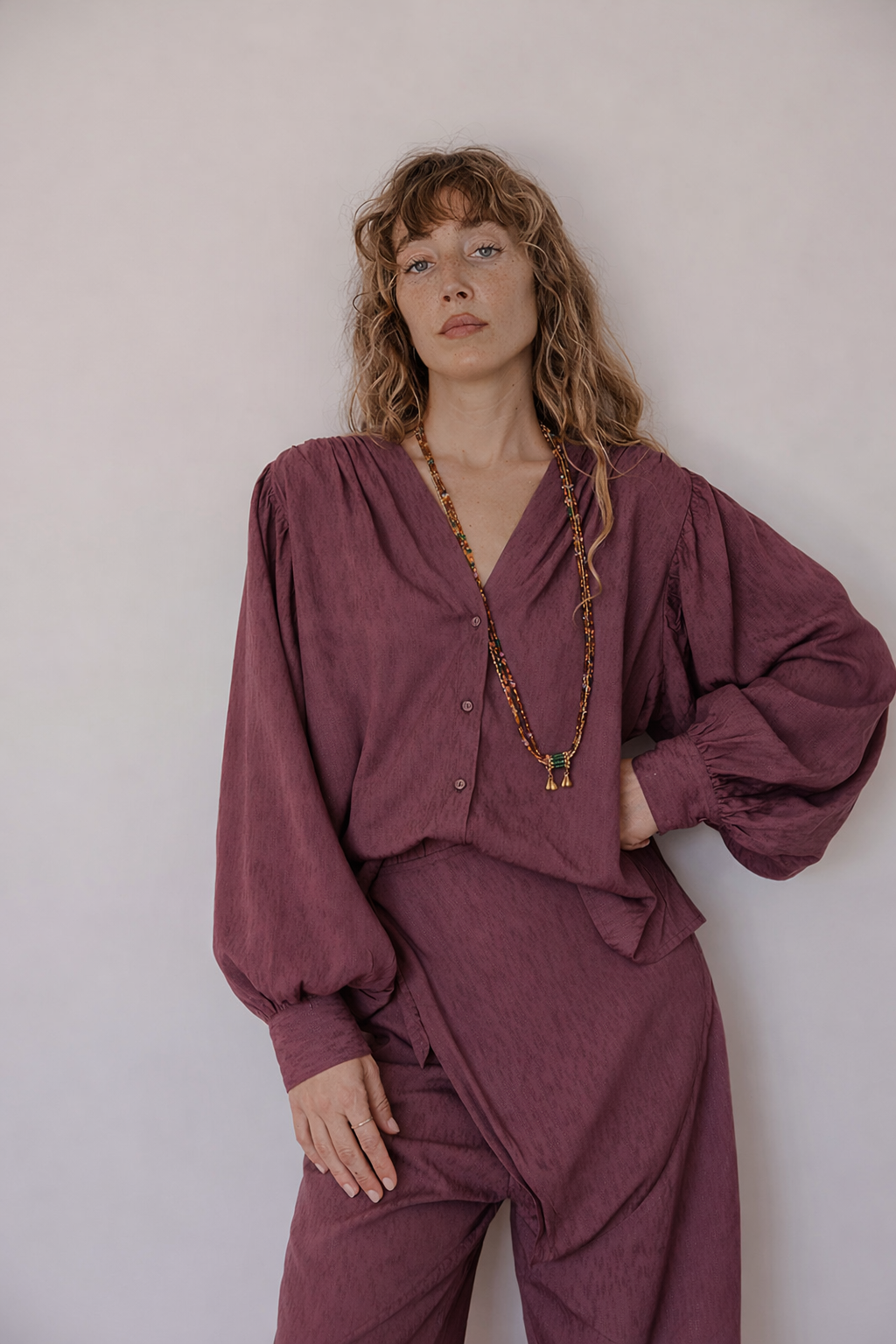 La blusa Alma es una invitación a la ligereza. Una pieza de alma etérea diseñada con volúmenes fluidos que danzan con el cuerpo, celebrando una feminidad natural y sin artificios. Su tono tierra empolvado evoca la serenidad de los paisajes orgánicos, convirtiéndola en un básico esencial de carácter eterno.