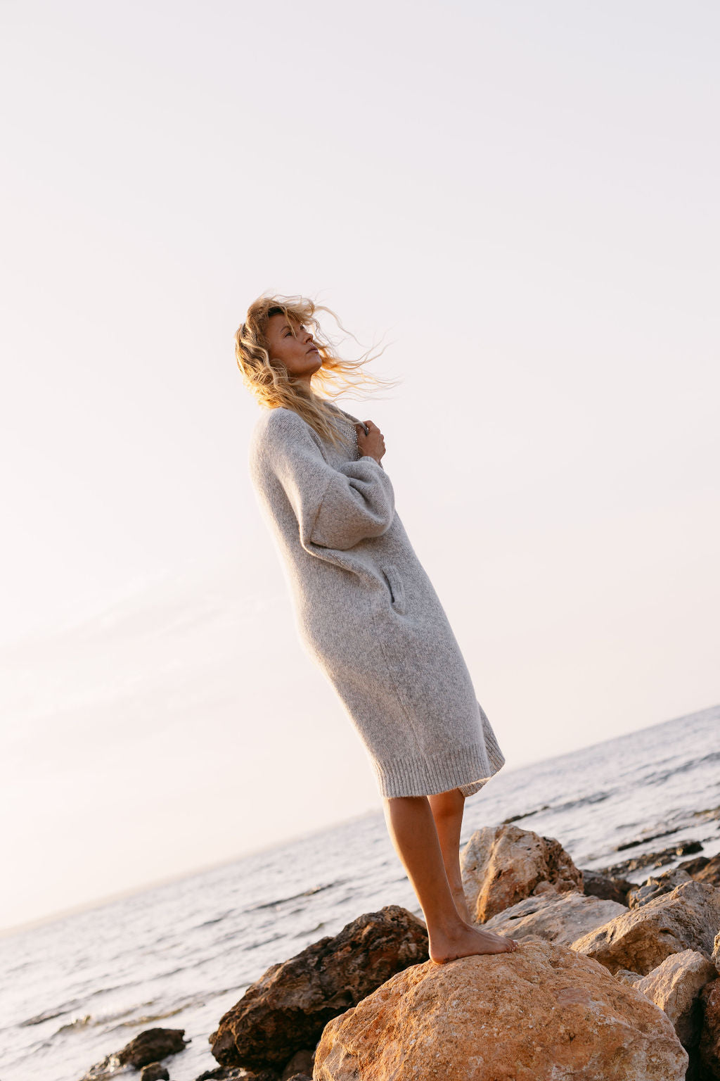 FLORENTINE es un abrigo de punto, con mangas efecto abullonado, estilo oversize y tejido italiano. Lo puedes elegir en dos largos diferentes, Uno midi por encima de tobillo o bien maxi.