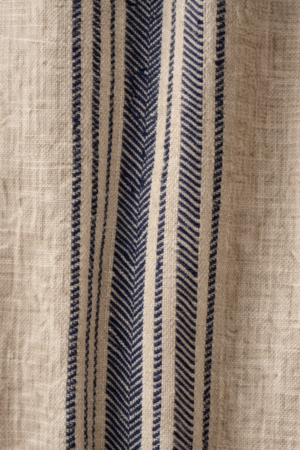 Vestido largo de silueta relajada en tejido ligero y fluido. Sus rayas verticales en tonos neutros estilizan la figura y aportan un aire atemporal. Escote en “V” con botonadura frontal y mangas largas ligeramente amplias. Incluye cinturón del mismo tejido para ajustar la cintura y definir la silueta. Versátil, natural y elegante.