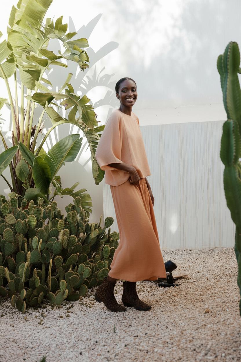 La falda COCO es una oda a la elegancia relajada, con un diseño que equilibra comodidad y estilo con naturalidad. Confeccionada en un suave modal de tacto aterciopelado, su caída fluida y su largo midi la convierten en una pieza atemporal, pensada para acompañarte temporada tras temporada. La cinturilla elástica en la espalda aporta confort sin renunciar a la forma, mientras que los bolsillos ocultos en la costura lateral suman funcionalidad discreta.