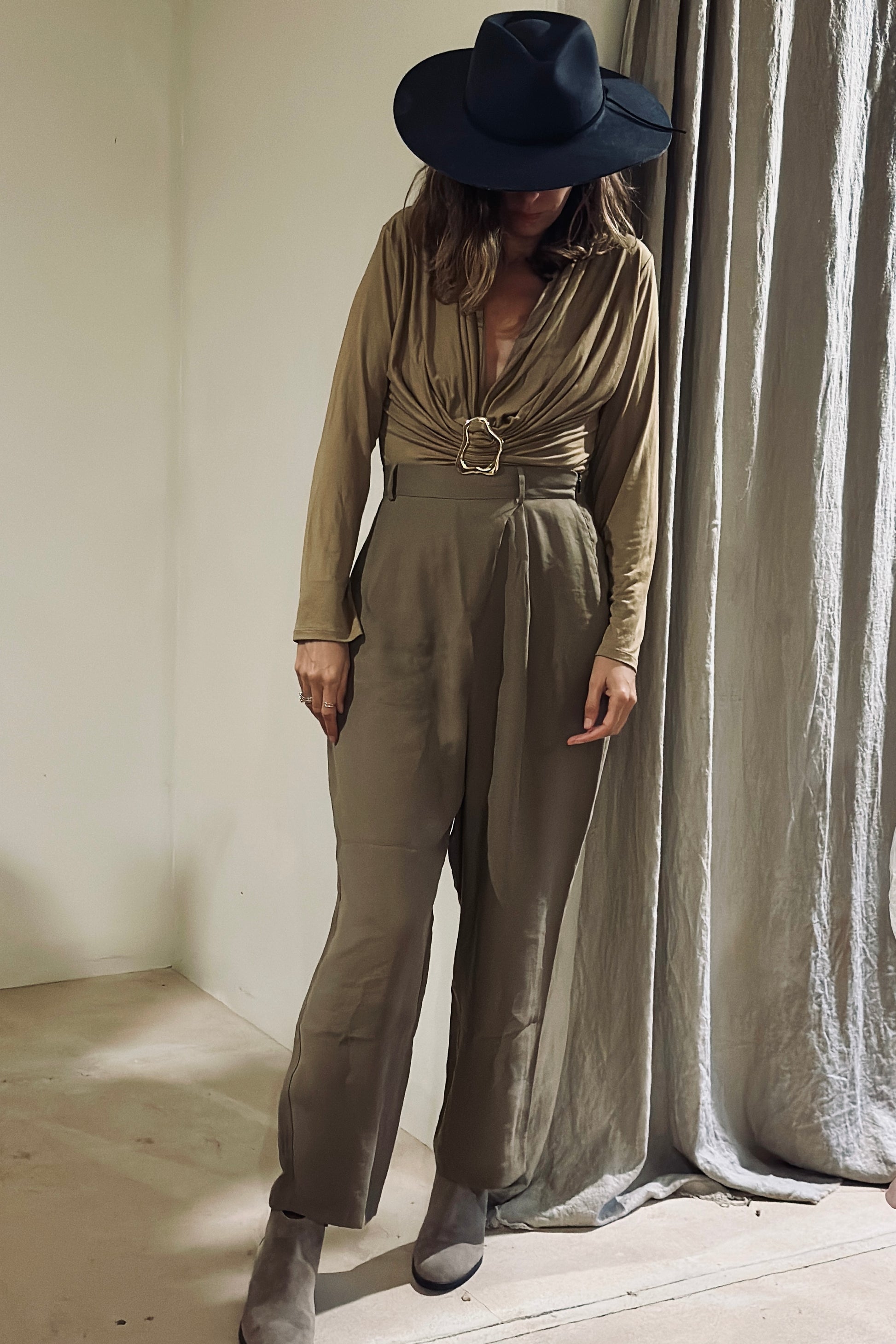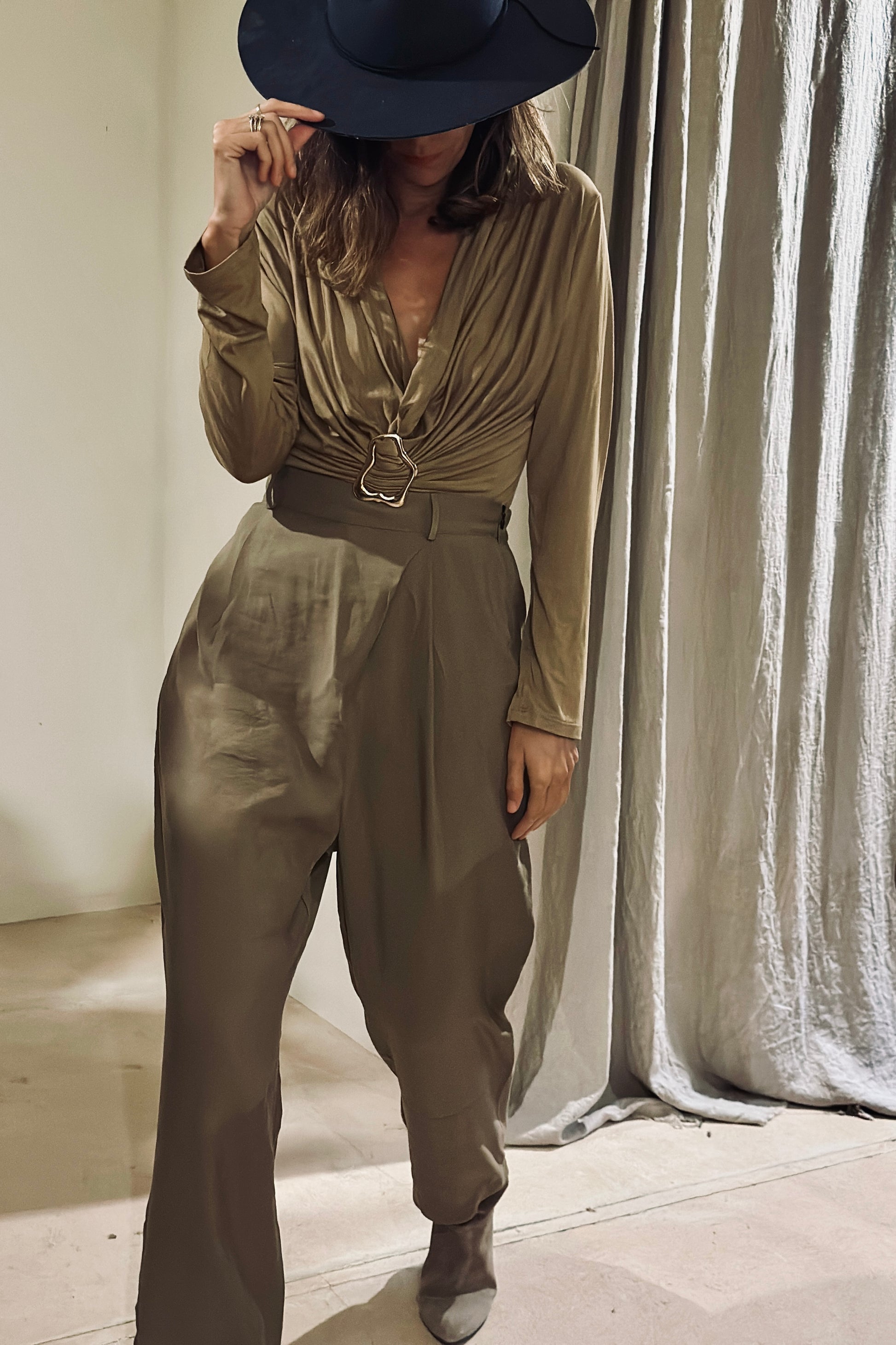 COCO es un pantalón de talle alto con carácter y ligereza. Sus pliegues frontales y pernera amplia le dan movimiento y estructura, mientras que el tono tierra aporta calidez y versatilidad. Ideal para días activos con mirada sofisticada.